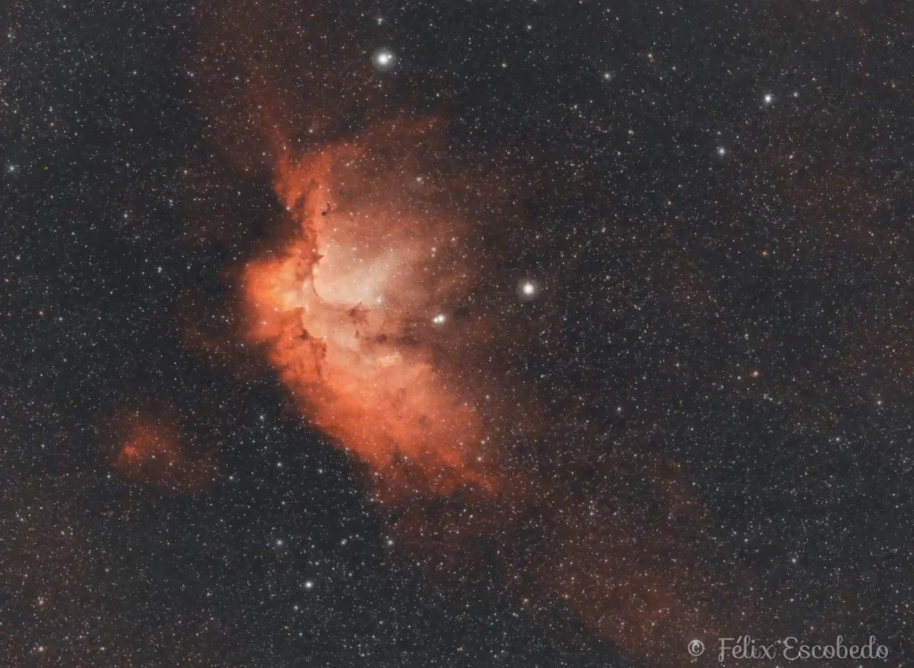 NGC 7380, ou nébuleuse du Sorcier, est un amas ouvert situé à environ 8 000 années-lumière de la Terre dans la constellation de Céphée.