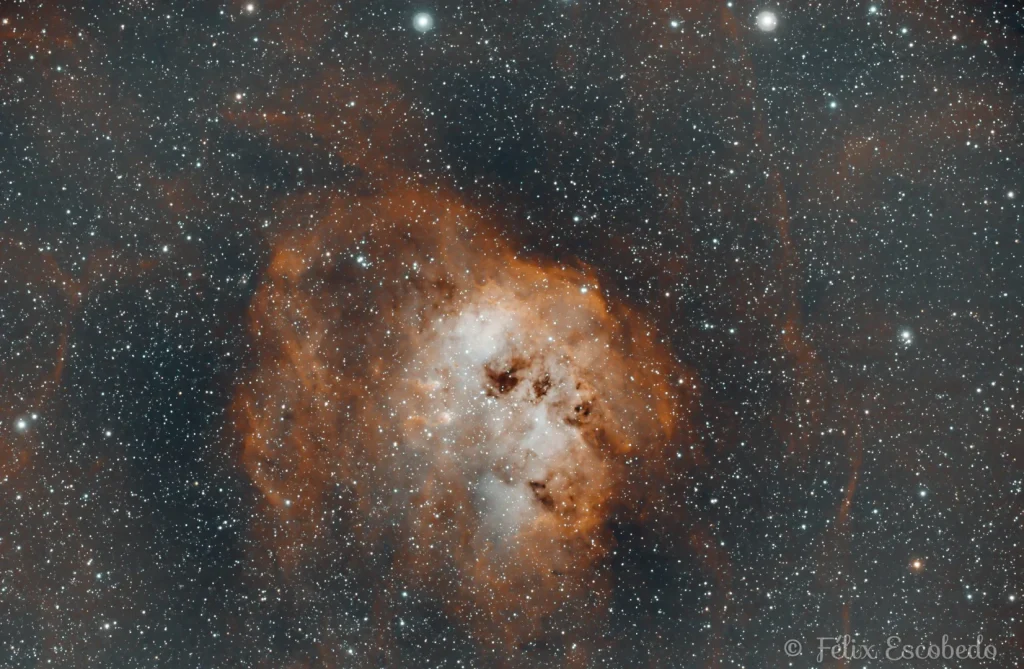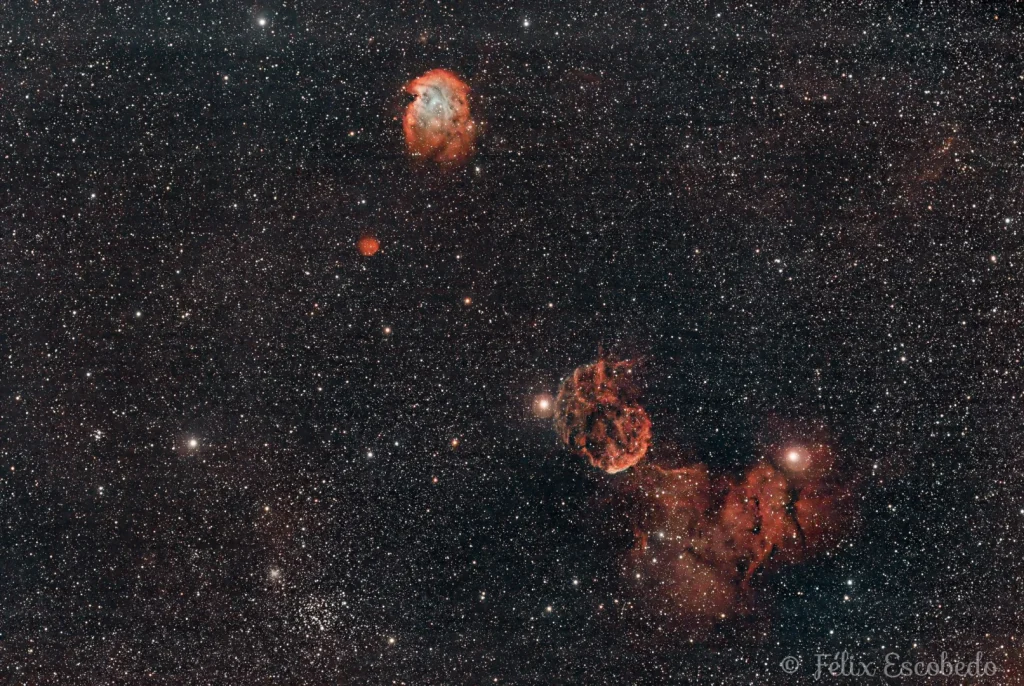 NGC 2174 est une nébuleuse en émission située dans la constellation d’Orion. On peut voir également la nébuleuse de la méduse.